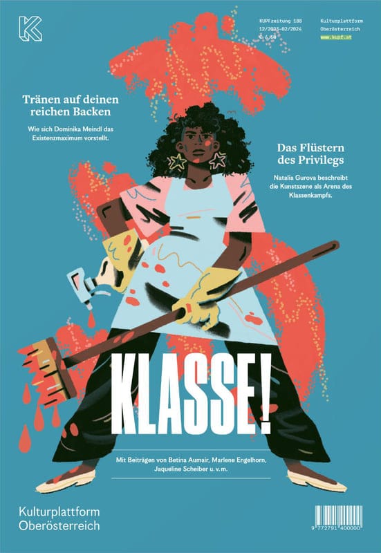 I was approached by the Austrian culture and arts platform KUPF to provide illustrations for their magazine issue on the interplay between social class and culture. For me it, was important to put the focus on those who are often the most overlooked in our society. Which is why I specifically wanted to depict a black woman, working in an often very underappreciated minimum wage job. And with her tools of the trade, she still creates art and she still fights against systemic injustices.