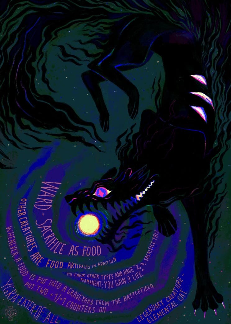 This commission by a client was for a reinterpretation of a “Magic the Gathering” card, namely the card for “Ygra, Eater of All” for their personal deck.