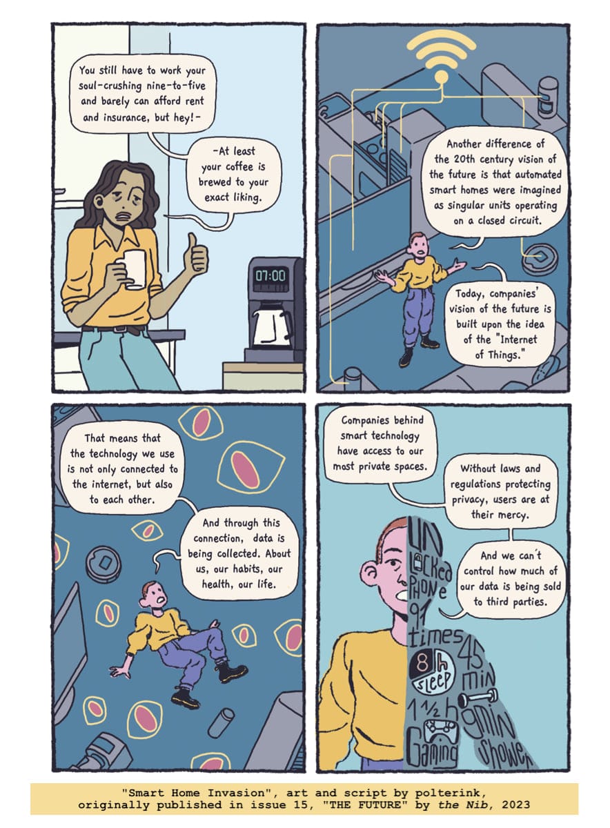 From broken promises, planned obsolescence to ideal future visions, the comic details why we shouldn’t blindly trust what tech companies tell us.